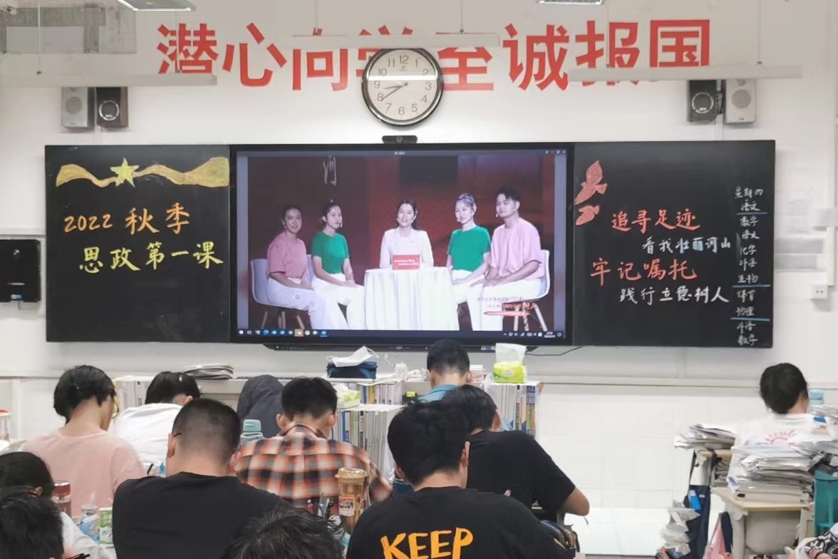 傍晚的教室中,时而乐声阵阵,时而讲述娓娓,这便是内涵丰富,引人入胜的“2022秋季思政第一课”。整节课采用节目授课与实践活动视频相结合的方式,将一堂别开生面的思政课烙印在同学们心中。