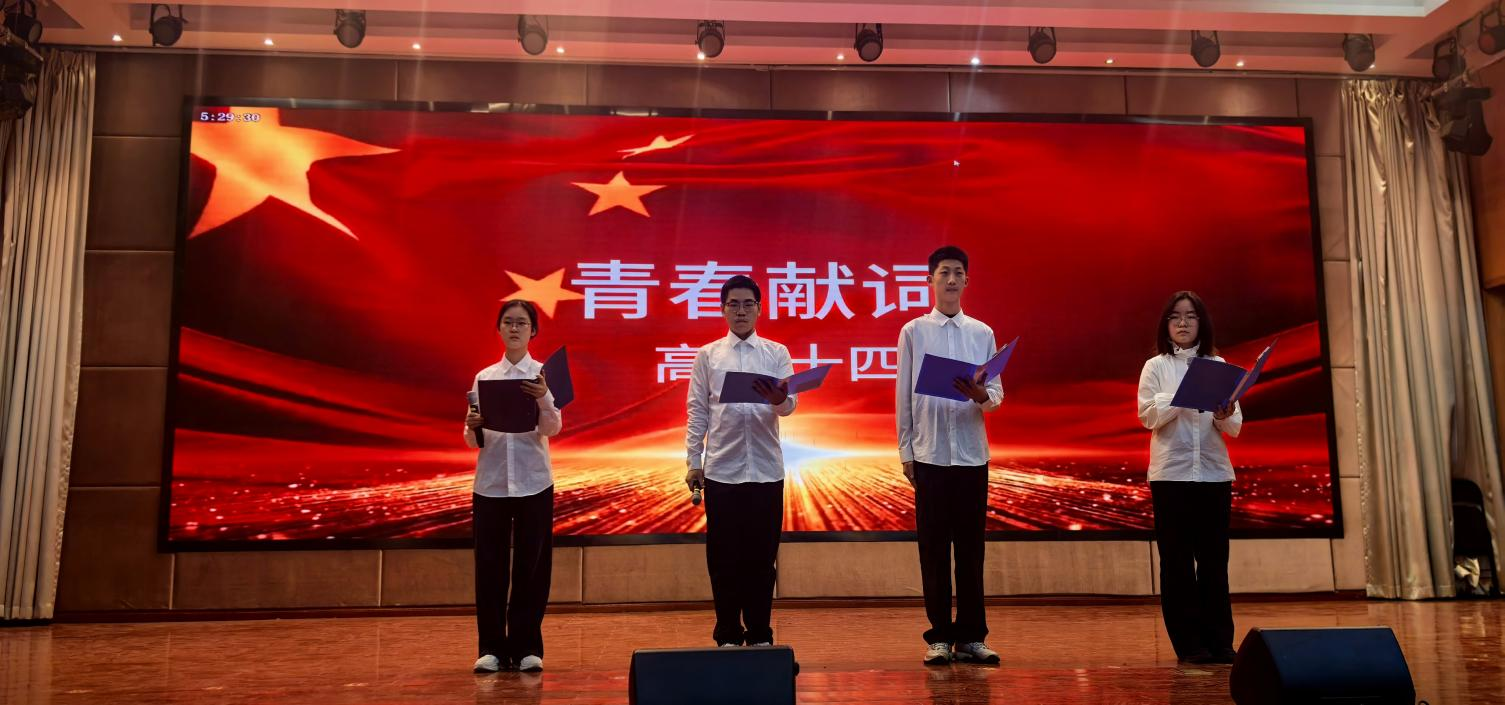 高一(14)班带来诗歌朗诵《青春献词》。忆往昔,山河破碎,青年志士以热血为祖国献身;观今朝,灯下山河无恙,吾辈青年当以燃烧着的青春为祖国奉献,为祖国歌唱,为祖国骄傲!