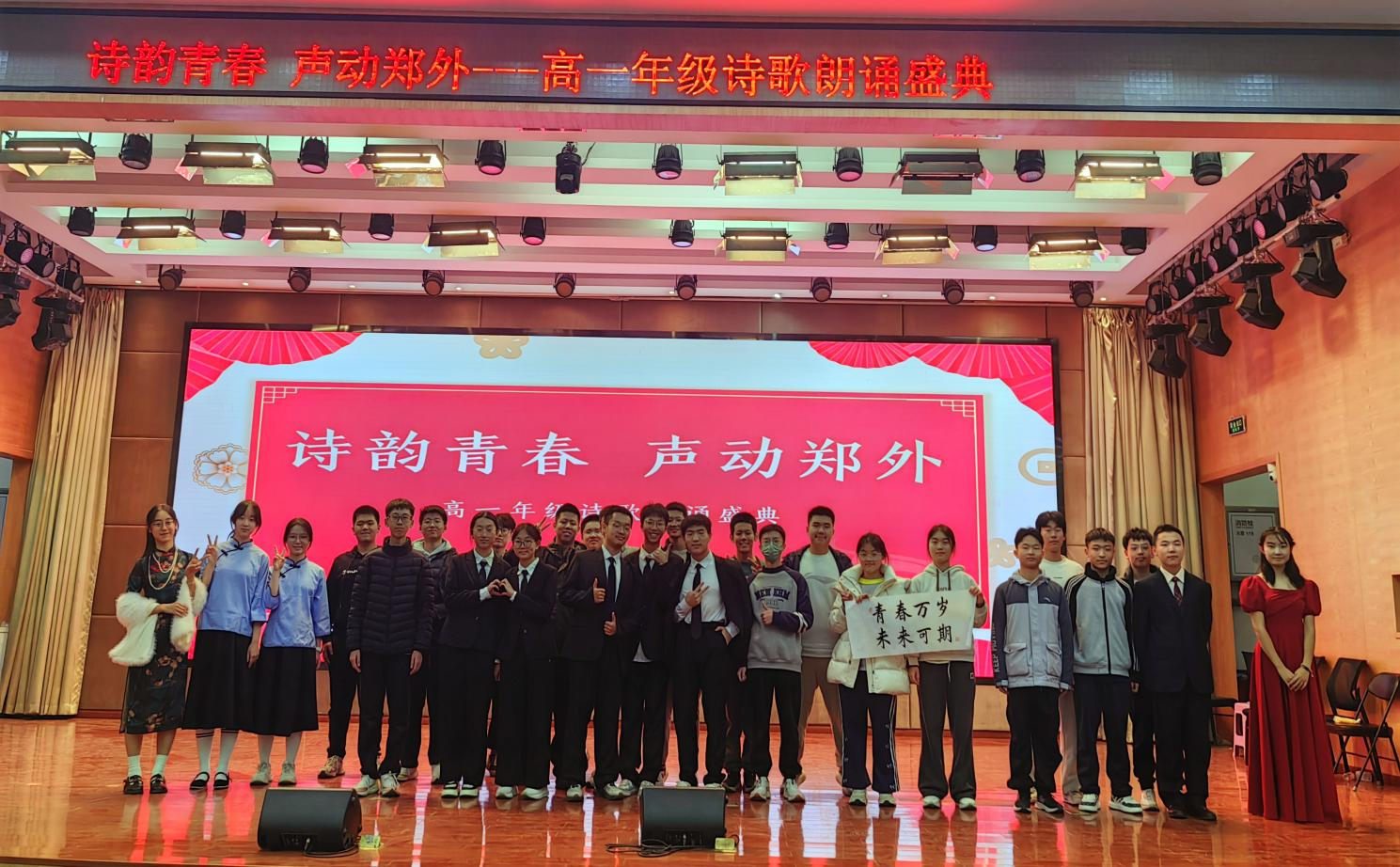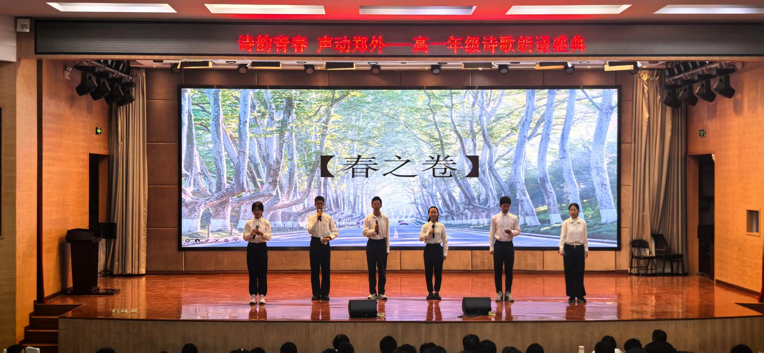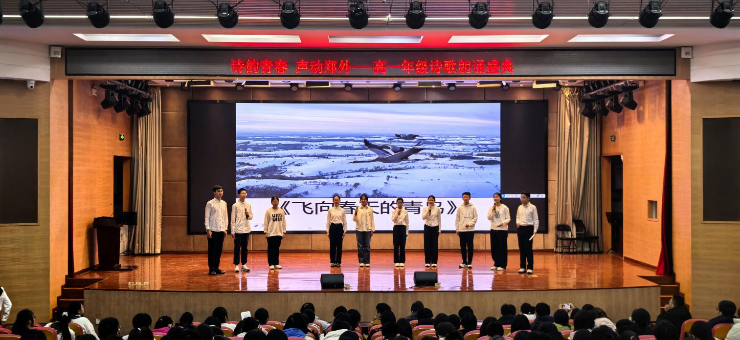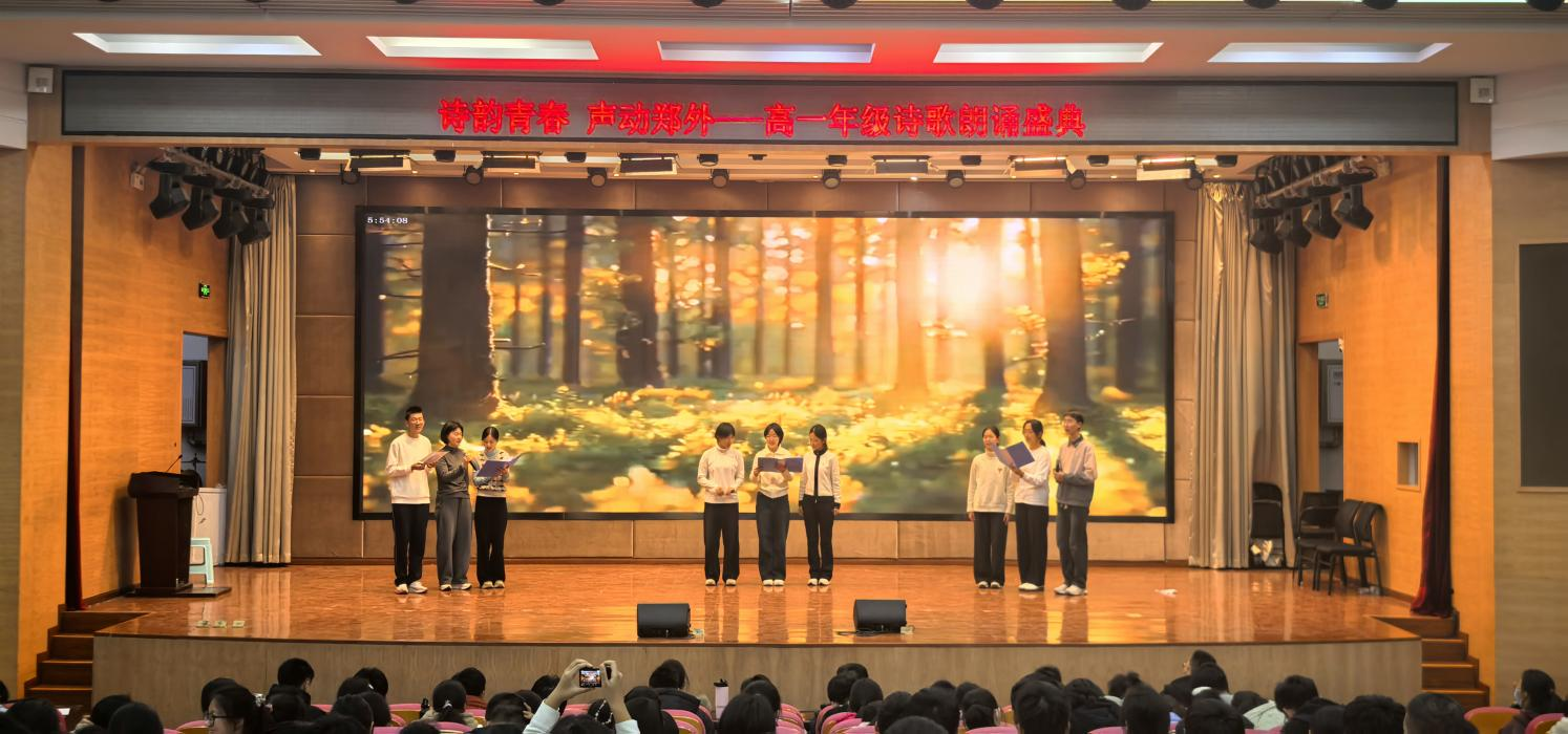 少年意气藏诗间,青春韵律映家国。2025年12月上旬,值中华人民共和国成立76周年、抗日战争胜利80周年之际,郑州外国语学校高一年级举行诗歌朗诵会,用铿锵韵律展现青春风采,以动人诗篇抒发爱党、爱国、爱校的深厚情怀。