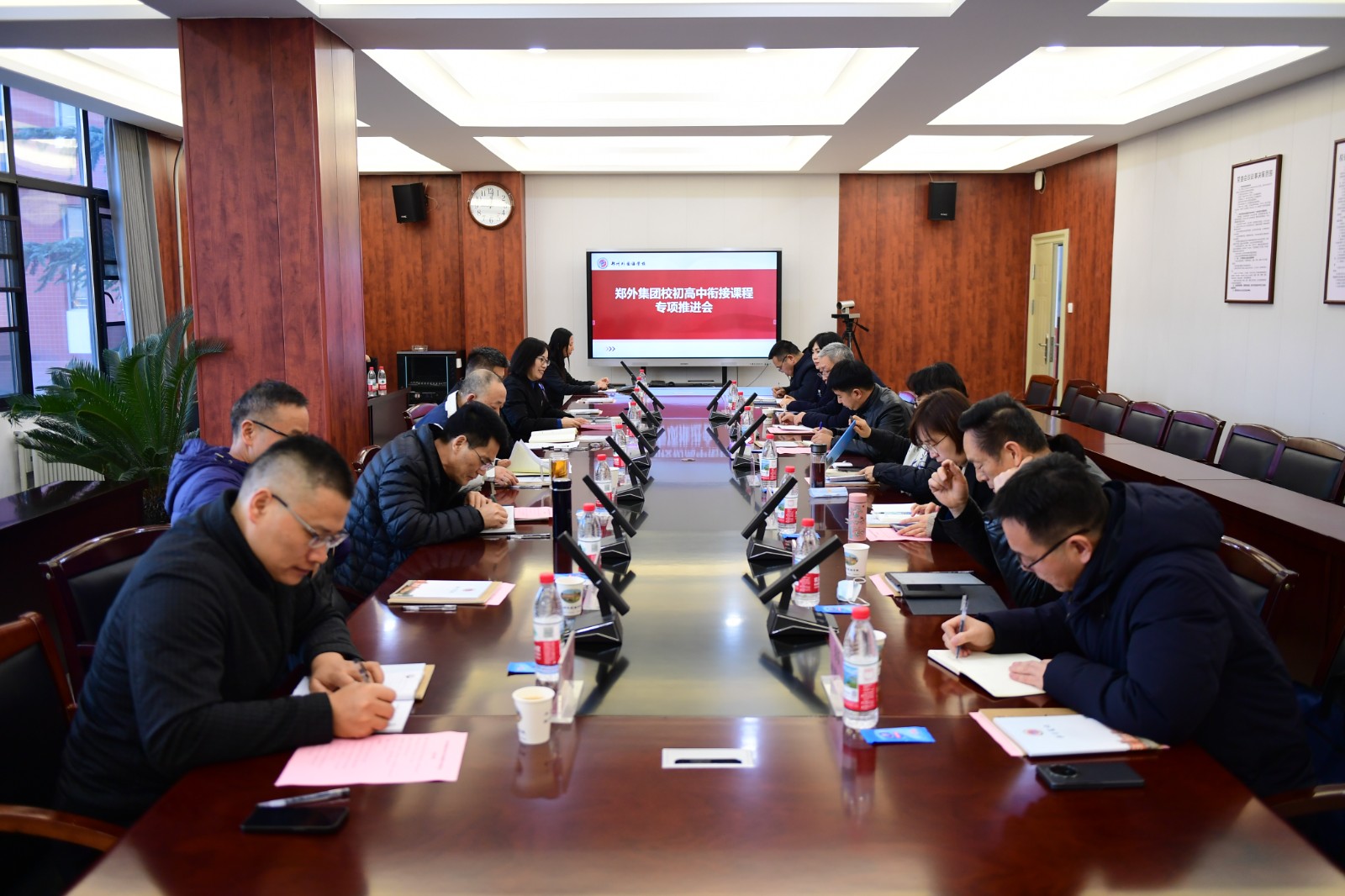 为深化教育教学改革,破解初高中学科衔接难题,推动基础教育高质量发展,2025年12月17日上午,郑州外国语学校“初高中学科一体化重点课题推进会隆重召开。会议以“深化课程衔接,赋能学生发展”为主题,旨在破解初高中教育断层难题,构建贯通式人才培养体系。学校相关方面领导王晓强、邢中芳、周剑、孙秋浩以及来自郑外教育集团相关学校和部分初高中学校的校长、教研员齐聚一堂,共同见证郑外又一个教育实践项目正式启航。