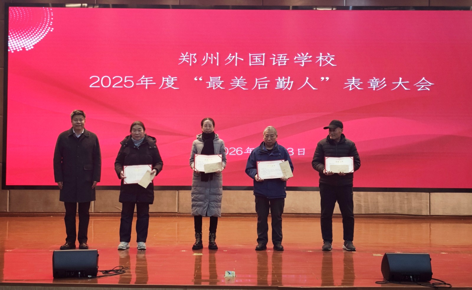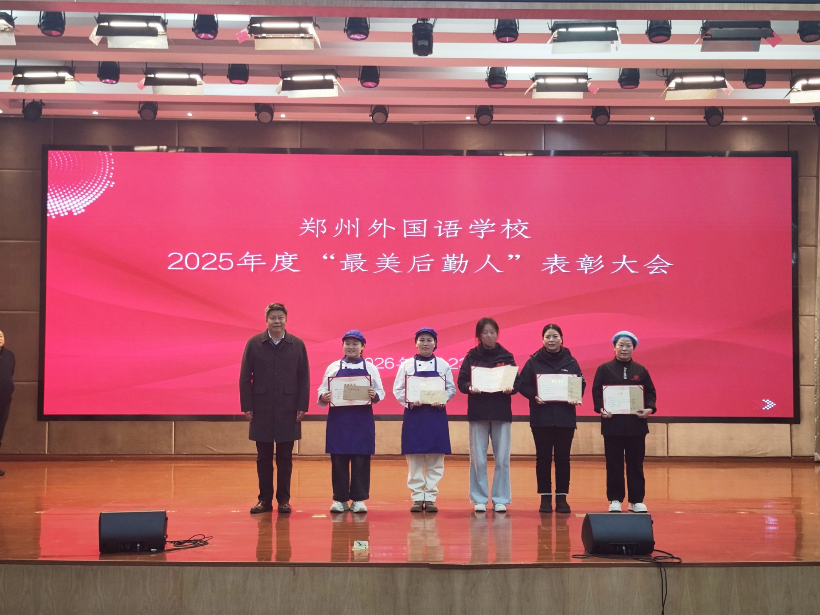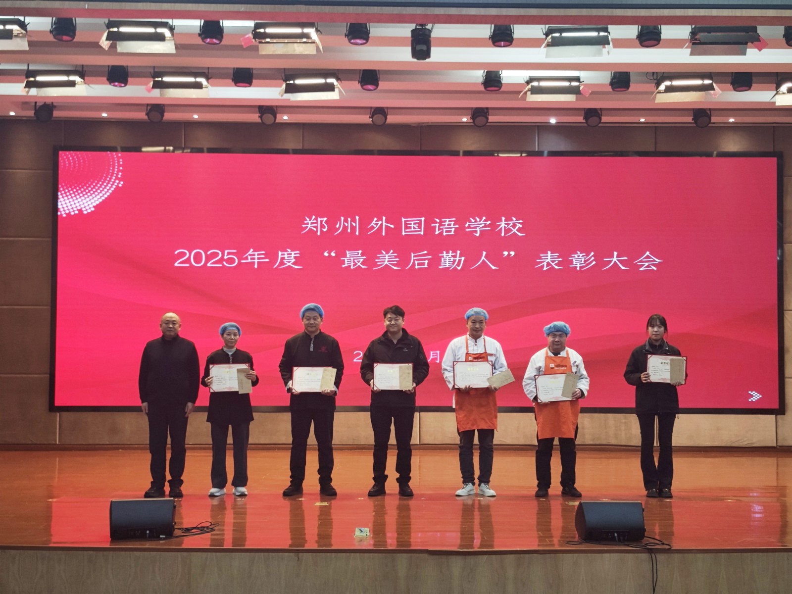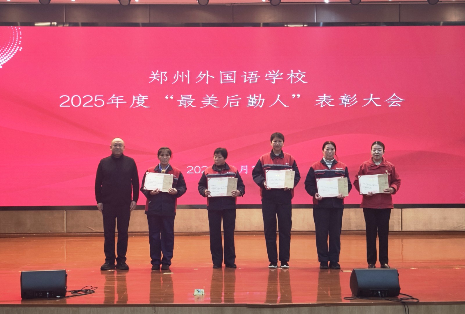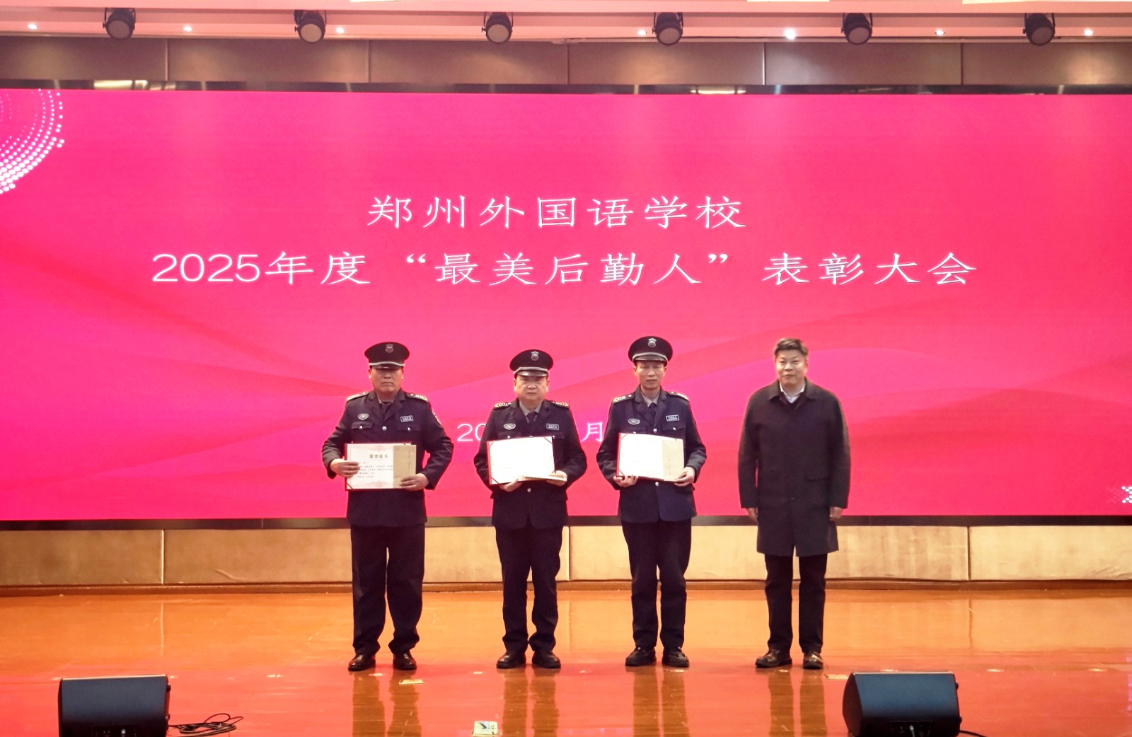 1月23日下午,郑州外国语学校隆重举行2025年度“最美后勤人”表彰大会。校领导、后勤部门负责人、服务企业代表及全体后勤工作人员出席大会,共同见证这一荣誉时刻。